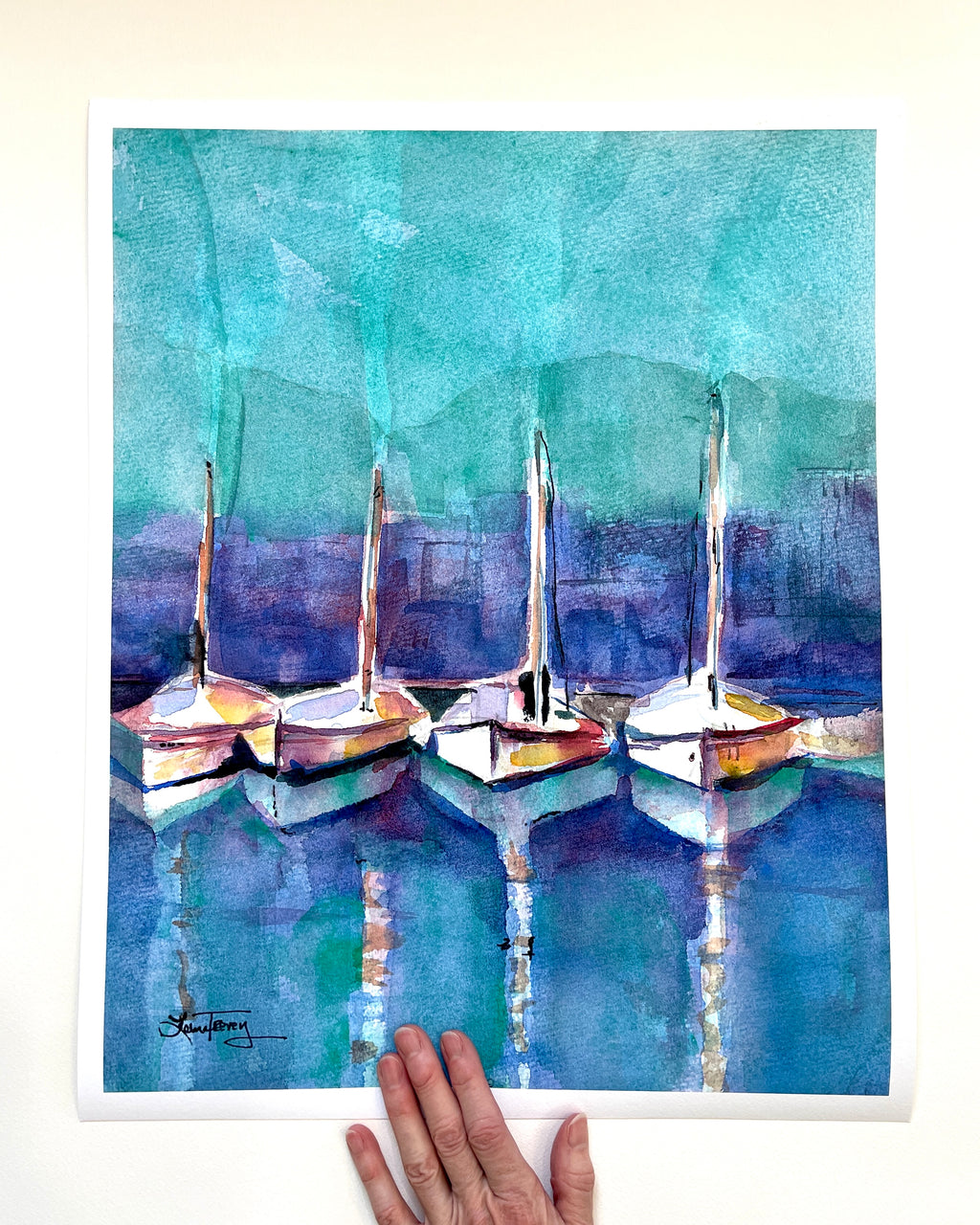Step into Spanish Mallorca with this vibrant giclee print of my original watercolor painting, It captures the romantic boats in the marina, professionally printed on 130lb thick paper with archival ink, looking just like the original. Perfect for coastal decor!